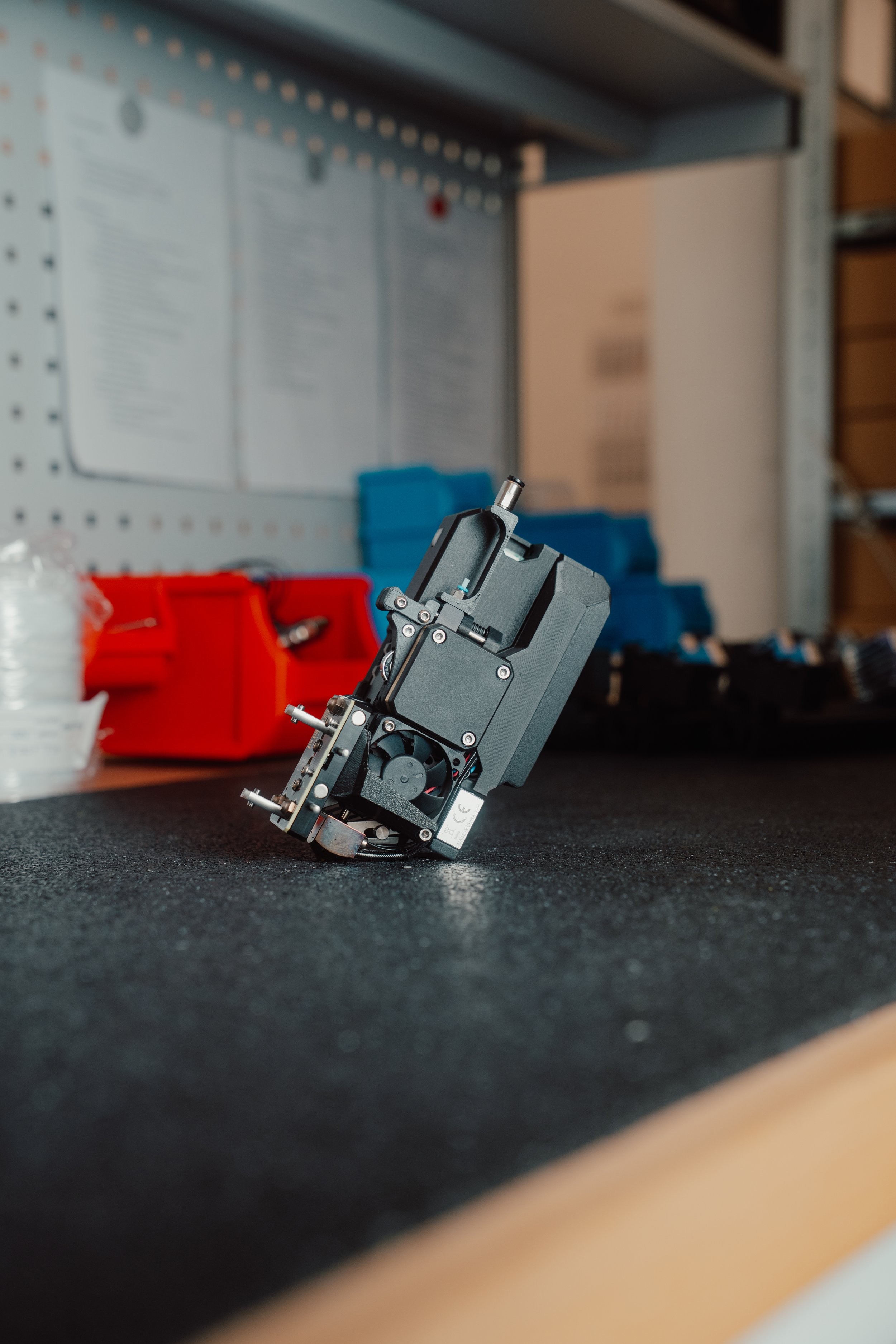 The printhead is designed specifically for processing pre-impregnated continuous fiber filament. It guides fiber and matrix with precision, maintains consistent process pressure, and ensures clean integration of the filament into the part.